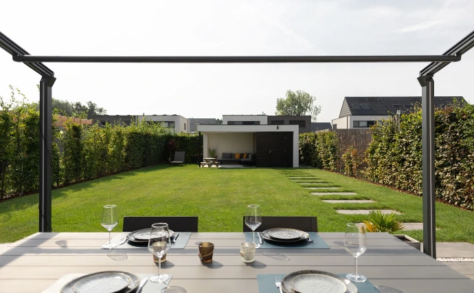 - Een vlotte afvoer van regenwater dankzij de palen van de pergola.