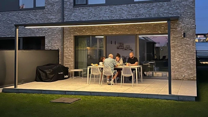 - De perfecte combinatie tussen een zonnescherm en een terrasoverkapping, waardoor je zowel beschutting als flexibiliteit hebt.