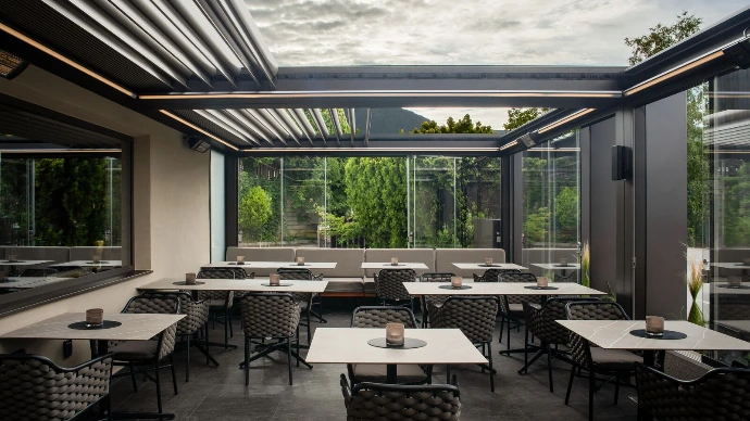 Brustor B600 S terrasoverkapping met openschuifbaar lamellendak